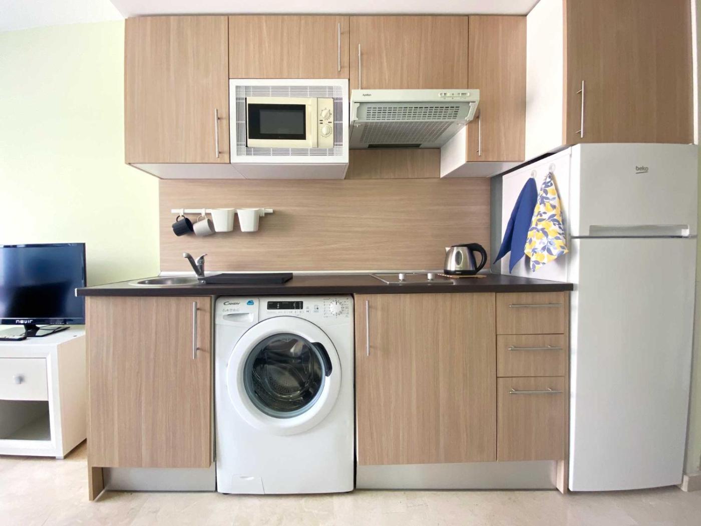 One-Bedroom Apartment. This apartments special feature is the private pool. This air-conditioned apartment comprises 1 living room, 1 separate bedroom and 1 bathroom with a shower. In the fully equipped kitchen, guests will find a refrigerator, kitchenware, a microwave and a toaster. This apartment features a washing machine, a tea and coffee maker, a flat-screen TV and a terrace. The unit offers 2 beds.