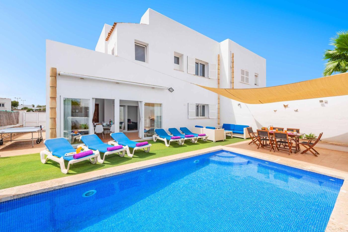 Guests can enjoy the outdoor swimming pool at the villa.