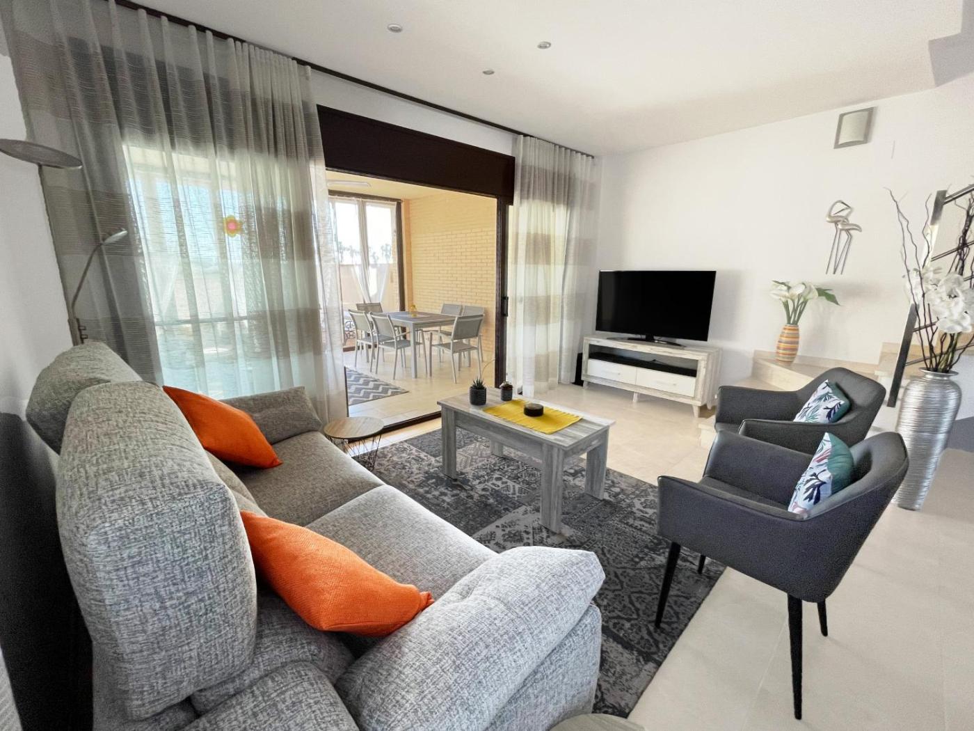 The spacious holiday home is equipped with 4 bedrooms, 3 bathrooms, bed linen, towels, a TV, a fully equipped kitchen, and a terrace with sea views. The property offers pool views.