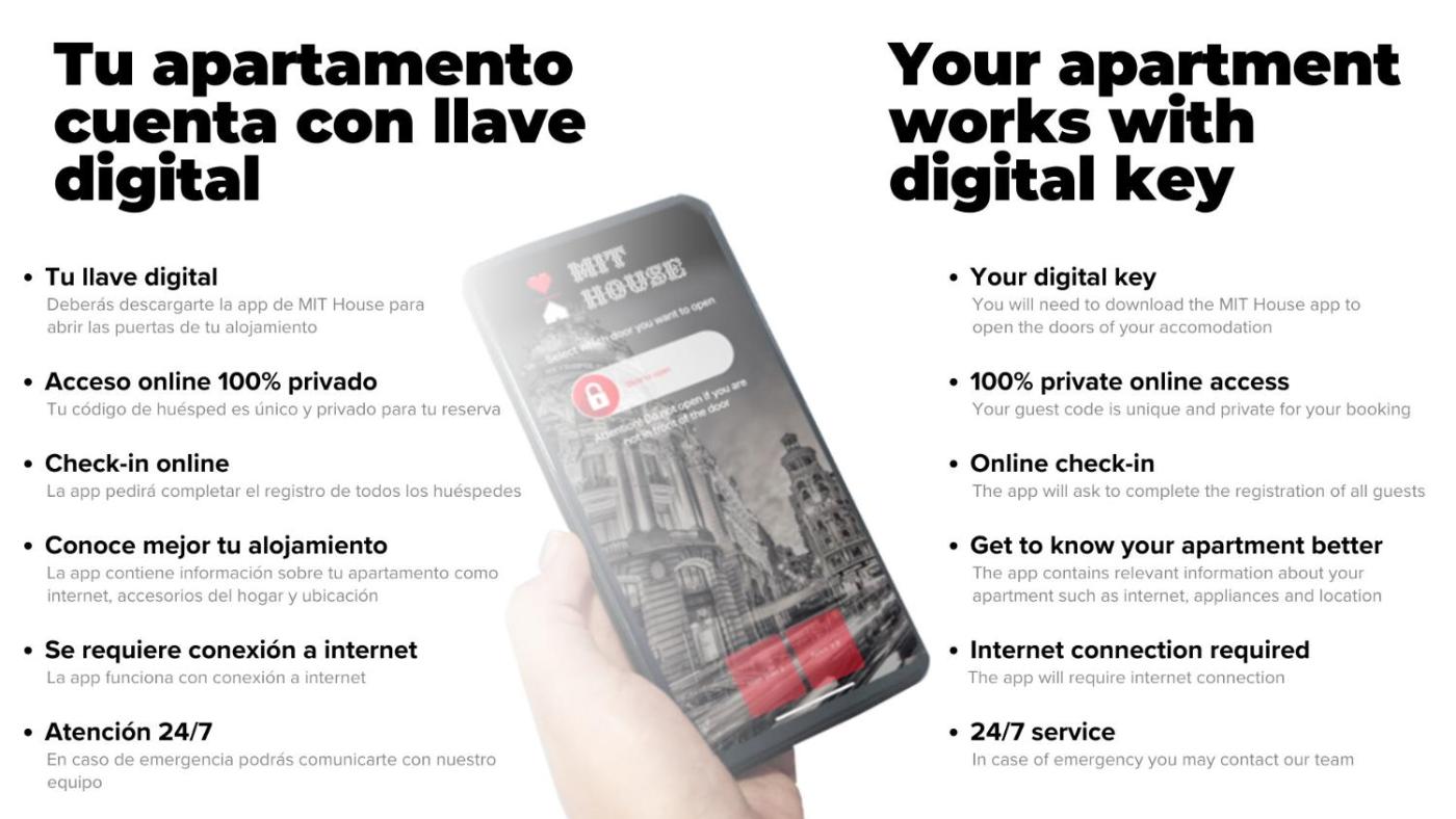 The check-in process involves a mandatory online registration of each guest, prior to accessing the apartment. It will be essential to have a mobile device and internet on the phone to access the apartment.