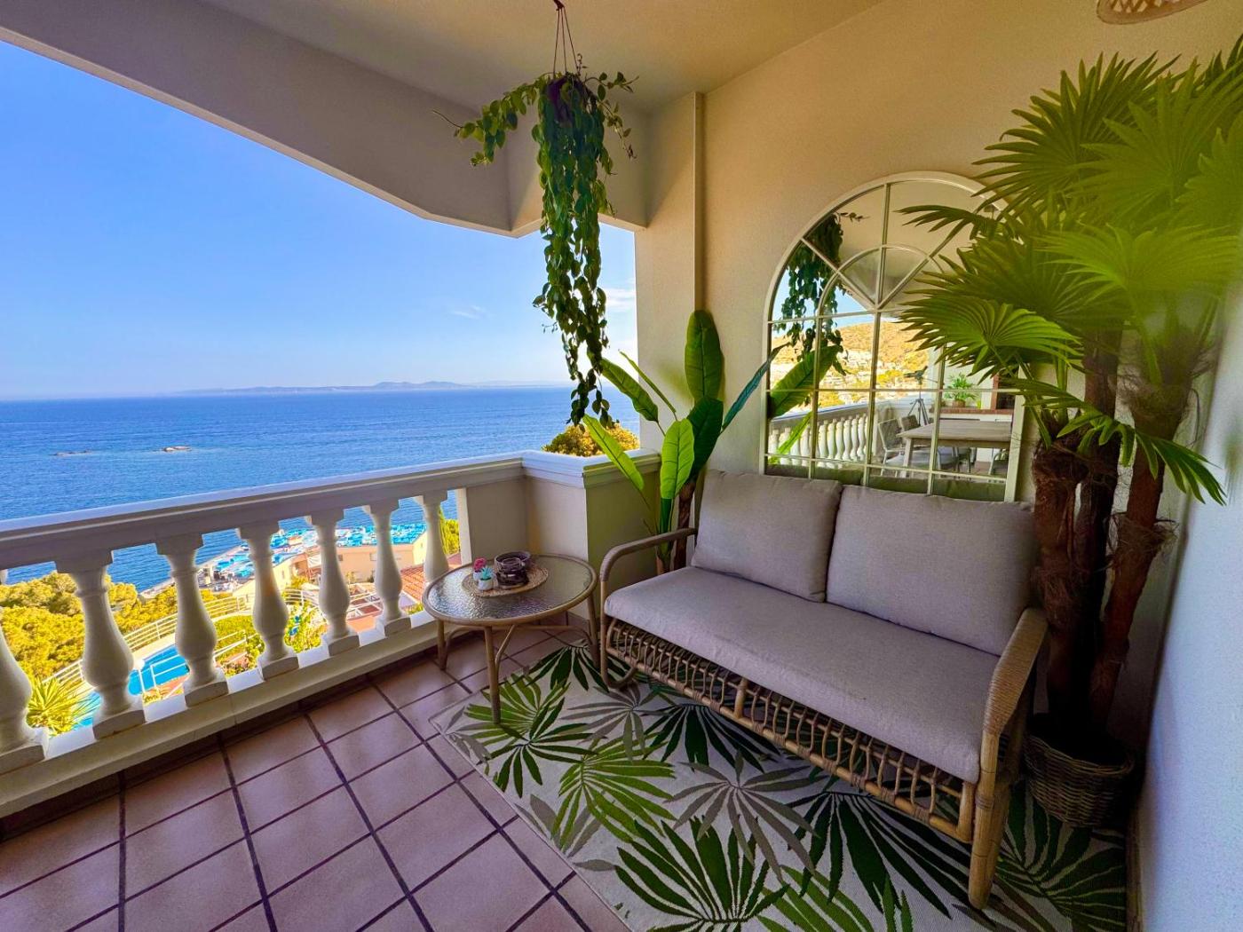 The spacious apartment with a terrace and sea views features 2 bedrooms, a living room, a flat-screen TV, an equipped kitchen with a dishwasher and an oven, and 2 bathrooms with a bath. The air-conditioned unit at the property features a shower and a dressing room. The property has an outdoor dining area.