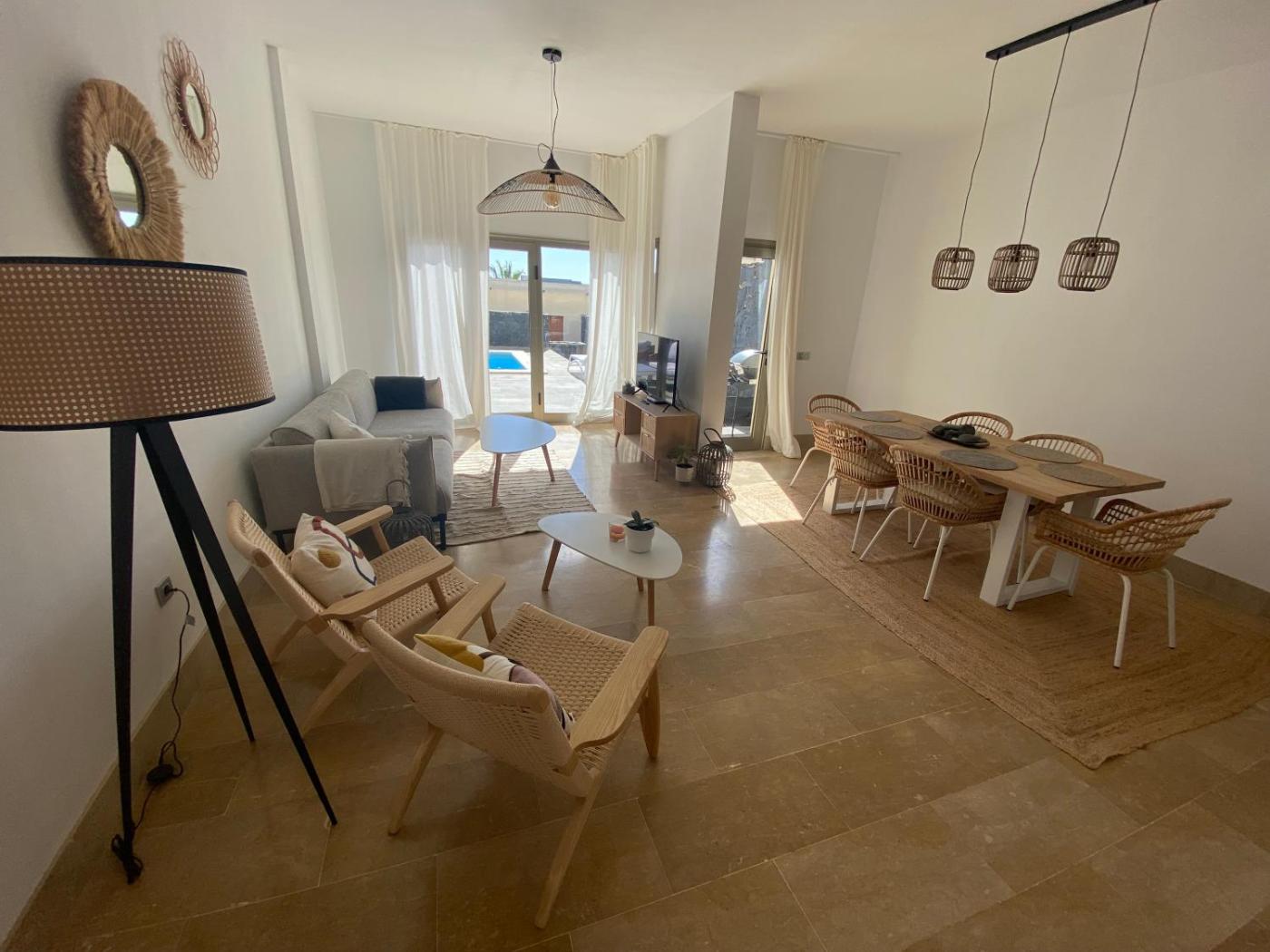 Three-Bedroom House. Guests will have a special experience as the holiday home offers a pool with a view. Featuring a private entrance, this spacious holiday home also consists of 3 bedrooms, a seating area and 2 bathrooms with a bath or a shower and a hairdryer. Guests will find a stovetop, a refrigerator, a dishwasher and an oven in the well-fitted kitchen. The holiday home also offers a barbecue. Boasting a terrace with sea views, this holiday home also provides a washing machine and a flat-screen TV. The unit offers 3 beds.