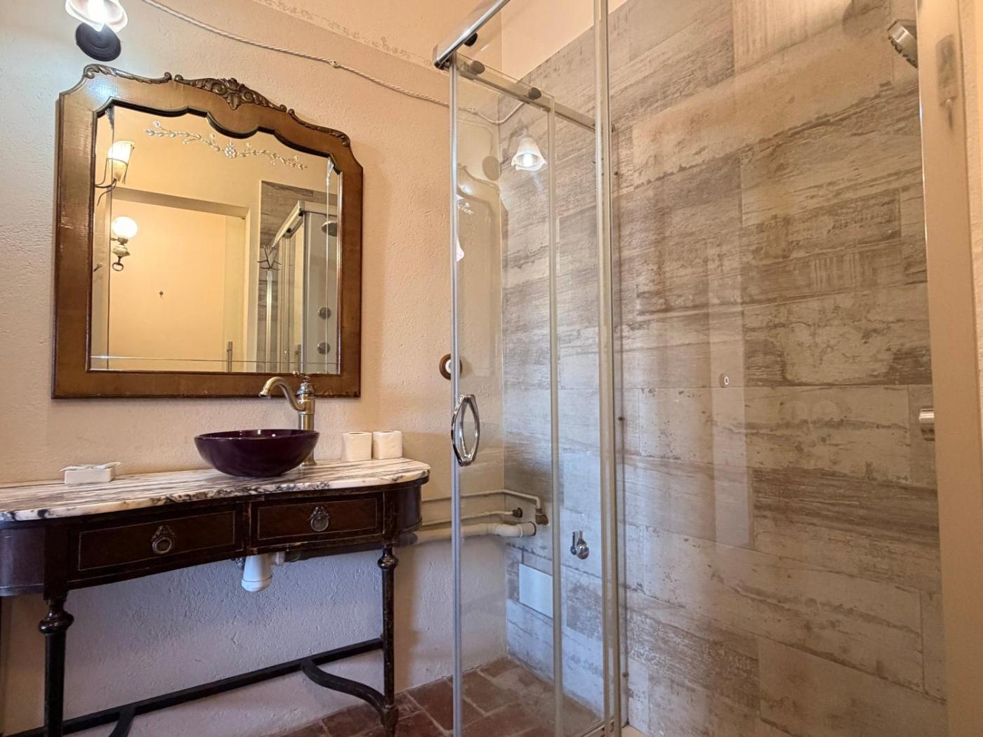 One-Bedroom House. Set on the 2nd floor of the house, this apartment has 1 double bedroom and a bathroom with hydromassage shower. The open living space includes a fireplace, sofa bed, and well-equipped kitchen. ;